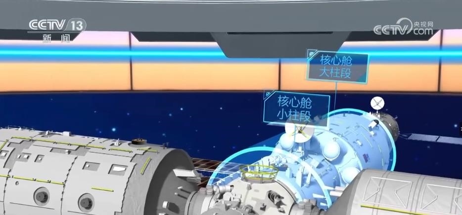 交會(huì)對接完成時(shí),航天員是坐在這個(gè)鐘形的神舟飛船返回艙里的,他們首先要打開頭頂上的返回艙艙門,進(jìn)入上方的飛船軌道艙。在軌道艙,航天員就可以脫下艙內(nèi)壓力服,換上艙內(nèi)工作服了,這樣行動(dòng)更加輕便自如。再往上,在軌道艙的頂部,有一個(gè)軌道艙前艙門,打開這道門之前,需要有一個(gè)給對接通道復(fù)壓的過程。因?yàn)?,飛船軌道艙前艙門與核心艙的節(jié)點(diǎn)艙徑向?qū)涌谂撻T挨得非常近,神舟十六號載人飛船與空間站組合體的交會(huì)對接,其實(shí)就是這兩個(gè)艙門外的對接機(jī)構(gòu)連接在一起,所以這兩個(gè)門之間就形成了一個(gè)對接通道。因?yàn)閷油ǖ览锸钦婵窄h(huán)境,所以航天員需要給對接通道復(fù)壓,確保兩邊壓力平衡了才可以開門。