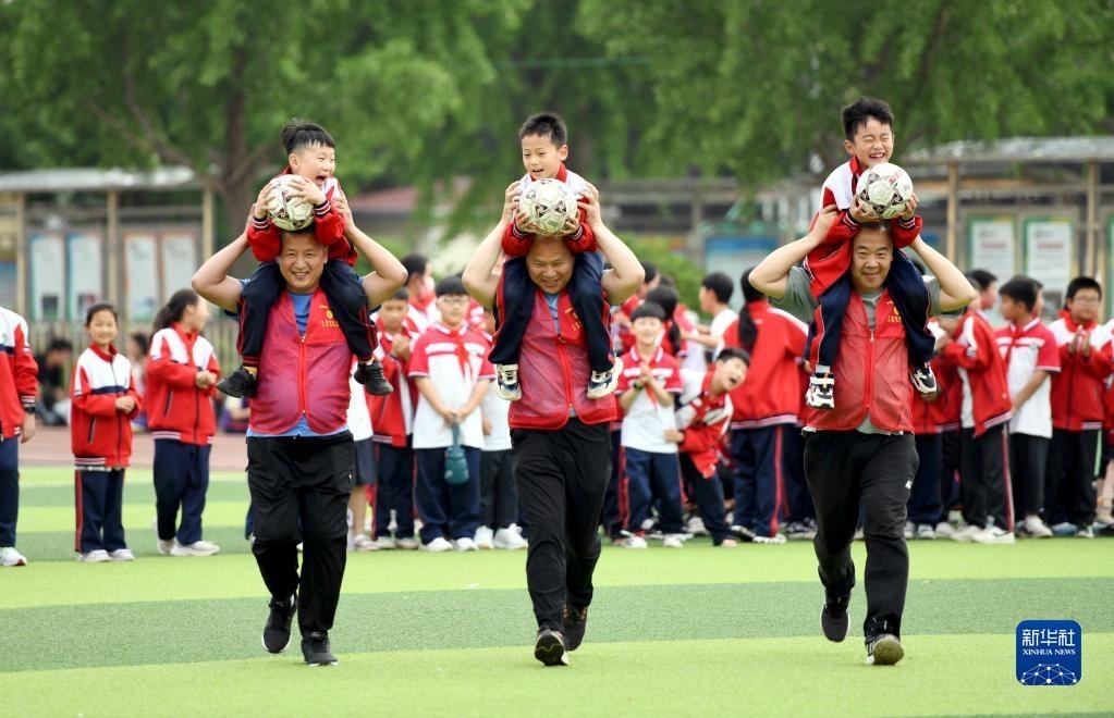 5月30日,河南省濟(jì)源市梨林鎮(zhèn)中心小學(xué)的學(xué)生參加校園足螺比賽。 新華社發(fā)(苗秋鬧攝)