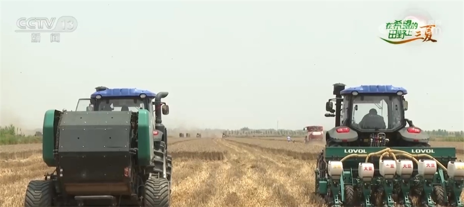 當(dāng)然,確保顆粒歸倉,除了要減損,更要及時(shí)搶收。今年麥?zhǔn)掌陂g,當(dāng)?shù)赜錾狭撕币姷慕涤晏鞖猓?日開始預(yù)計(jì)還會(huì)有一輪降雨,所以大比武的同時(shí),搶收也在抓緊進(jìn)行,大家要抓緊這幾天的窗口期,進(jìn)行24小時(shí)的搶收作業(yè)。農(nóng)業(yè)專家告訴我,在當(dāng)?shù)兀涤陮τ邴準(zhǔn)盏挠绊懹袃牲c(diǎn),一個(gè)是土地變得潮濕松軟,大型機(jī)械下地難。針對這點(diǎn),當(dāng)?shù)匾膊扇×舜胧谝恍┩恋剡€沒有干透的麥田里,我們看到有不少履帶式的收割機(jī),它們雖然體型稍小,但履帶可以避免陷入土地,還有一些無人駕駛的智慧農(nóng)機(jī),可以解決搶收時(shí)的人手問題。這些都是當(dāng)?shù)剞r(nóng)業(yè)部門按照農(nóng)戶需求及時(shí)幫助調(diào)配的。目前,阜南全縣投入聯(lián)合收割機(jī)4300多臺(tái),組建了搶收服務(wù)隊(duì)76個(gè)、農(nóng)機(jī)維修服務(wù)隊(duì)28個(gè),將爭取在5天內(nèi)完成全部麥?zhǔn)铡?/p>