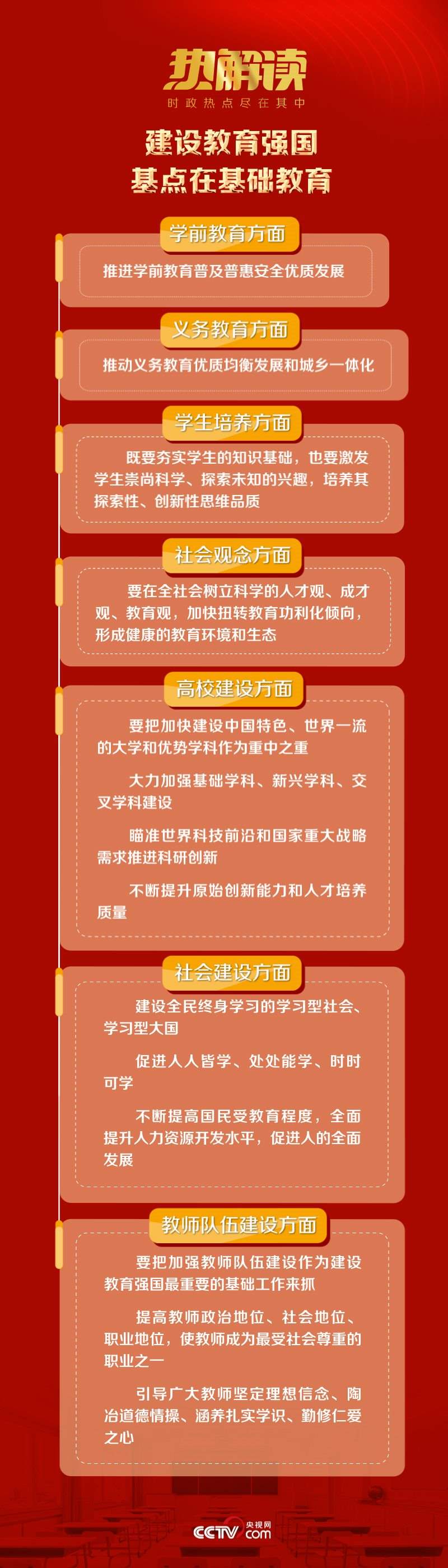 這次集體學習中,在強調“要堅持把高質量發(fā)展作為各級各類教育的生命線”時,總書記首先提到的就是基礎教育。他指出,建設教育強國,基點在基礎教育?;A教育搞得越扎實,教育強國步伐就越穩(wěn)、后勁就越足。