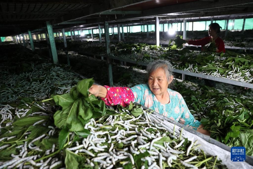 6月2日,重慶市黔江區(qū)濯水鎮(zhèn)雙龍村村民在飼養(yǎng)春蠶。