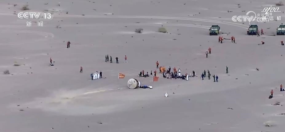 返回艙成功著陸,擔負搜救回收任務的搜救分隊及時發(fā)現目標并抵達著陸現場。