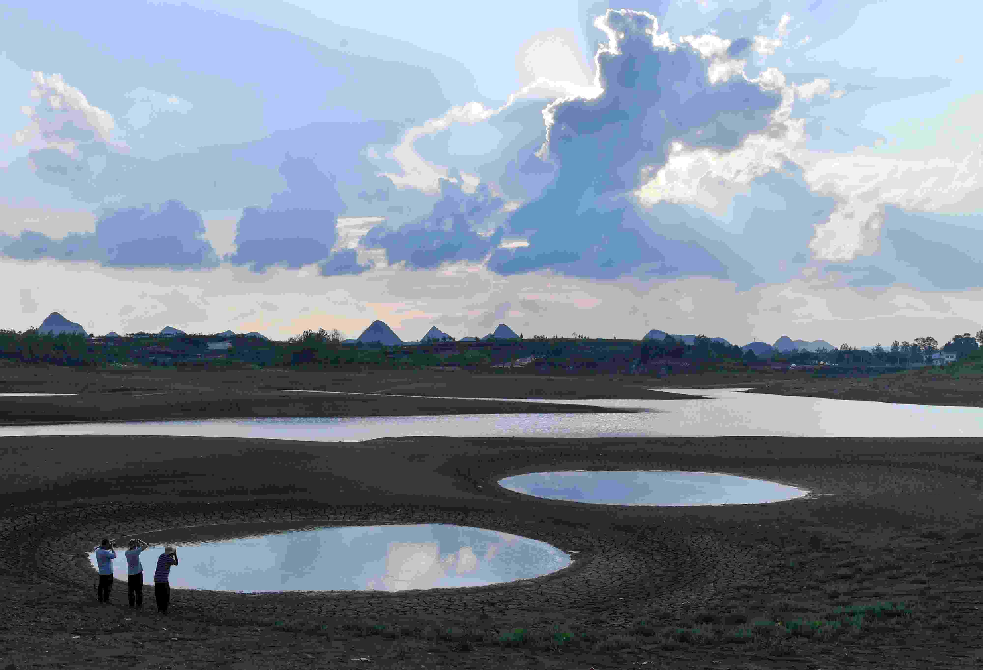 2023年6月3日,貴陽,紅楓湖水位降低,灘涂裸露。 視覺中國