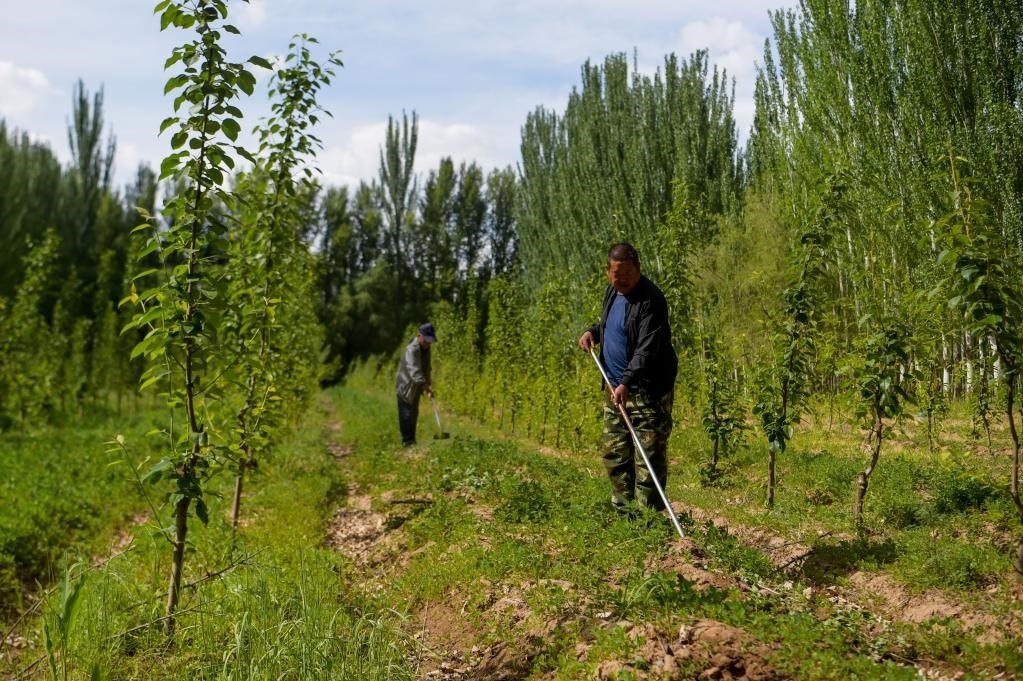 6月5日,臨河區(qū)國營新華林場工人在管護林木。新華社記者 李志鵬 攝