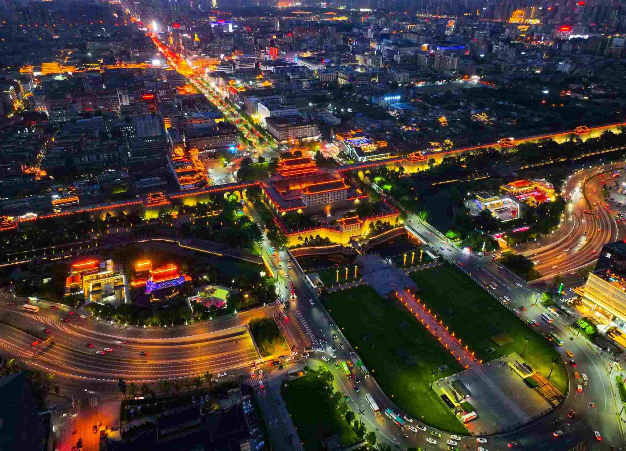 2023年6月8日,西安南門城墻及中軸線夜景。視覺(jué)中國(guó)