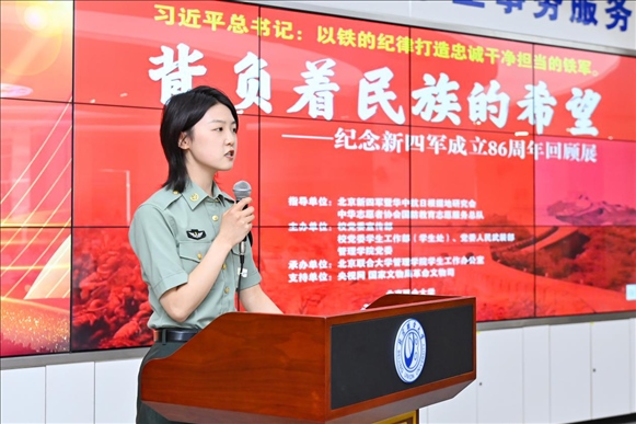 為深入學(xué)習(xí)貫徹習(xí)近平新時(shí)代中國(guó)特色社會(huì)主義思想主題教育,落實(shí)習(xí)近平加強(qiáng)全民國(guó)防教育的重要指示精神,弘揚(yáng)愛國(guó)主義精神、增強(qiáng)全民國(guó)防意識(shí),推動(dòng)全民國(guó)防教育進(jìn)校園,深化學(xué)?!按笏颊n”建設(shè),6月9日,由北京新四軍暨華中抗日根據(jù)地研究會(huì)、中華志愿者協(xié)會(huì)國(guó)防教育志愿服務(wù)總隊(duì)指導(dǎo),北京聯(lián)合大學(xué)黨委學(xué)生工作部(學(xué)生處)、黨委人民武裝部、黨委宣傳部、北京聯(lián)合大學(xué)新時(shí)代文明實(shí)踐中心建設(shè)規(guī)劃研究所、管理學(xué)院黨委共同主辦,管理學(xué)院學(xué)生工作辦公室承辦的“背負(fù)民族希望——紀(jì)念新四軍成立86周年回顧展”大會(huì)在北四環(huán)校區(qū)學(xué)生事務(wù)大廳舉行。