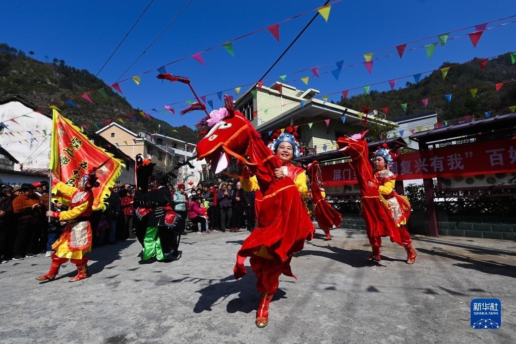 浙江杭州淳安縣屏門(mén)鄉(xiāng)屏前村傳統(tǒng)廟會(huì)上的竹馬表演(3月10日攝)。近年來(lái),屏門(mén)鄉(xiāng)當(dāng)?shù)貙⒚袼妆硌荨⑻で噘p春、農(nóng)家特產(chǎn)展賣(mài)等融入傳統(tǒng)廟會(huì)中,成為美麗山鄉(xiāng)的春季熱鬧“大戲”,助力鄉(xiāng)村文旅融合發(fā)展和共同富裕。新華社記者 徐昱 攝