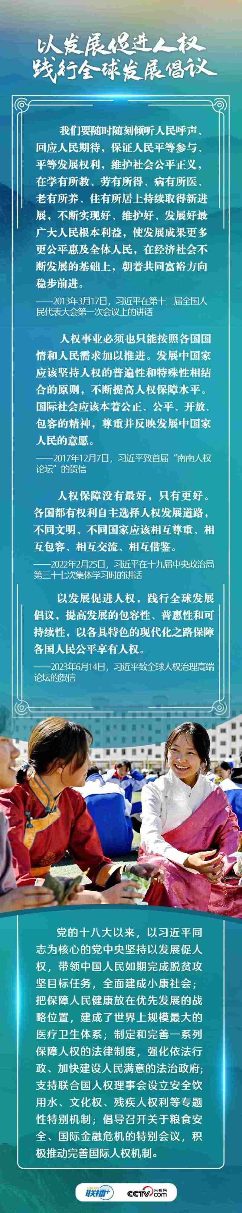 6月14日,習(xí)近平主席向全球人權(quán)治理高端論壇致賀信強調(diào),中國堅持人民至上,堅持走順應(yīng)時代潮流、適合本國國情的人權(quán)發(fā)展道路,在推進(jìn)中國式現(xiàn)代化的進(jìn)程中不斷提升人權(quán)保障水平,促進(jìn)人的自由全面發(fā)展。