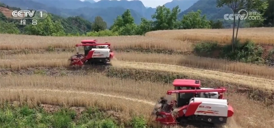 此外,還有更多適應性能強的農機裝備開進了以往機收率不高的地塊。在甘肅省徽縣,15萬畝小麥已陸續(xù)成熟?;湛h地處秦巴山,耕地大多以坡地為主。為了讓小麥顆粒歸倉,當?shù)亟M織體型小、能爬坡過坎的履帶式聯(lián)合收割機開展機收作業(yè),機收率達到95%以上,打通了農機進田“最后一公里”的難題。