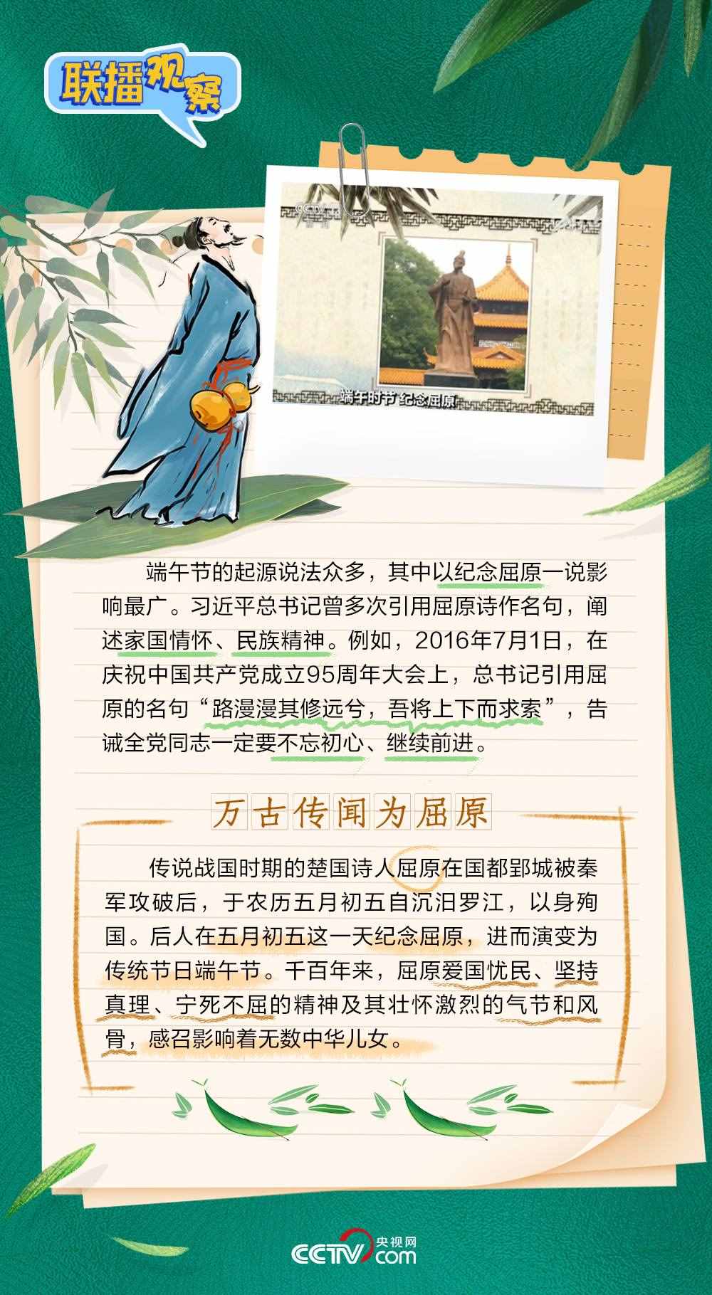 習(xí)近平總書(shū)記曾在多個(gè)場(chǎng)合對(duì)端午節(jié)的傳統(tǒng)習(xí)俗、文化標(biāo)識(shí)傾注關(guān)懷。央視網(wǎng)《聯(lián)播+》特推出海報(bào),與您品習(xí)俗、度佳節(jié)。