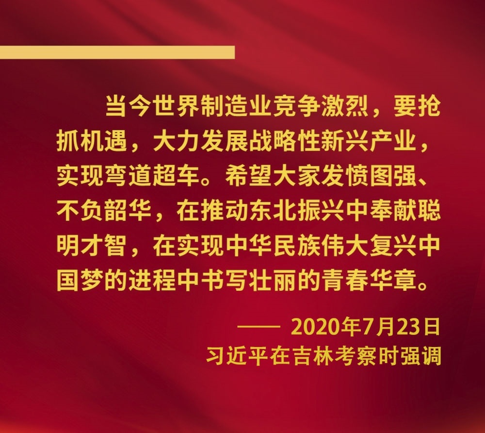 他強(qiáng)調(diào),新時(shí)代新征程推動(dòng)?xùn)|北全面振興,要貫徹落實(shí)黨的二十大關(guān)于推動(dòng)?xùn)|北全面振興實(shí)現(xiàn)新突破的部署,完整準(zhǔn)確全面貫徹新發(fā)展理念,牢牢把握東北在維護(hù)國(guó)家“五大安全”中的重要使命,牢牢把握高質(zhì)量發(fā)展這個(gè)首要任務(wù)和構(gòu)建新發(fā)展格局這個(gè)戰(zhàn)略任務(wù),統(tǒng)籌發(fā)展和安全,堅(jiān)持目標(biāo)導(dǎo)向和問(wèn)題導(dǎo)向相結(jié)合,堅(jiān)持鍛長(zhǎng)板、補(bǔ)短板相結(jié)合,堅(jiān)持加大支持力度和激發(fā)內(nèi)生動(dòng)力相結(jié)合,咬定目標(biāo)不放松,敢闖敢干加實(shí)干,努力走出一條高質(zhì)量發(fā)展、可持續(xù)振興的新路子,奮力譜寫(xiě)東北全面振興新篇章。