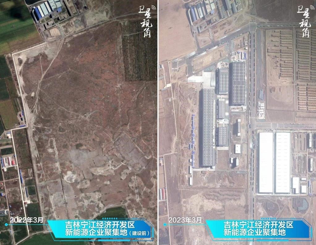 ↑2023年與2022年相比,吉林寧江經濟開發(fā)區(qū)的一片空地建設成頗具規(guī)模的新能源企業(yè)聚集地。