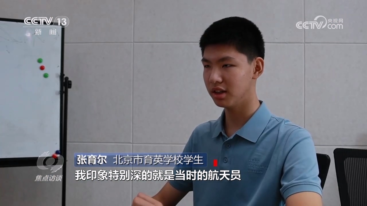 北京市育英學(xué)校學(xué)生張育爾:“我印象特別深的是當(dāng)時(shí)航天員拿針筒把氣泡注射到水里,然后形成了一個(gè)類似于放大鏡的視覺效果,看到這個(gè)感覺很新鮮、很科幻,一開始是好奇心驅(qū)動了,后來就開始了解這方面的東西?!?/p>