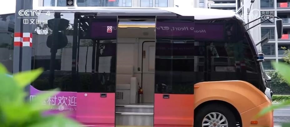 總臺(tái)記者 黃珊:亞運(yùn)村里的AR智能巴士在全自動(dòng)巡航狀態(tài)下,能為乘客提供接駁、講解的服務(wù)。正前方的特殊窗戶結(jié)合車載AR功能,透過(guò)它能夠看到車外的實(shí)時(shí)影像,結(jié)合虛擬場(chǎng)景,虛實(shí)結(jié)合,非常奇妙。