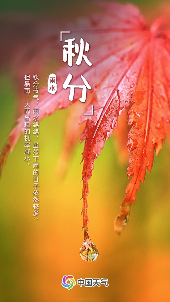 秋分時節(jié),南下的冷空氣與逐漸衰減的暖濕空氣相遇,易產(chǎn)生降水,如西南等地秋雨正當(dāng)時。雖然下雨的日子依然較多,但暴雨、大雨出現(xiàn)的機(jī)率減小。
