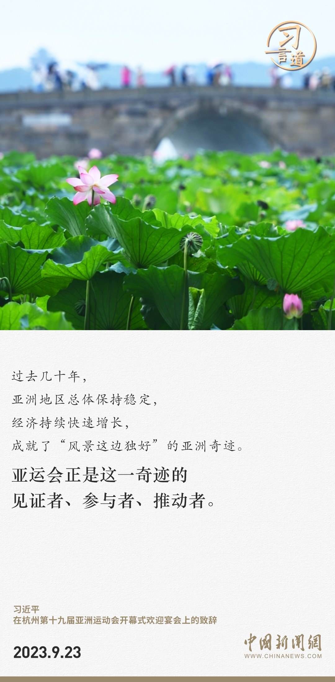 9月23日中午,國(guó)家主席習(xí)近平和夫人彭麗媛在浙江省杭州市西子賓館舉行宴會(huì),歡迎來華出席杭州第19屆亞洲運(yùn)動(dòng)會(huì)開幕式的國(guó)際貴賓。習(xí)近平發(fā)表致辭指出——