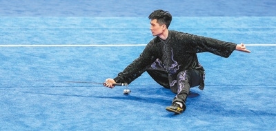9月25日,武術男子太極拳太極劍全能決賽,中國體育代表團選手高浩楠在比賽中。記者 厲衍飛攝