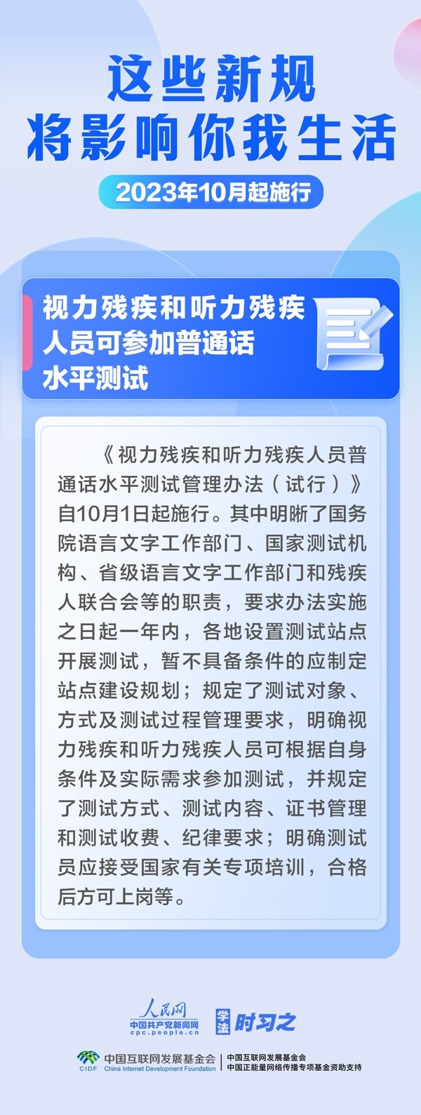 預防和制止假冒國企央企等違法行為;加強校外培訓監(jiān)管;視力殘疾和聽力殘疾人員可參加普通話水平測試……10月,這些新規(guī)施行,將影響你我生活。