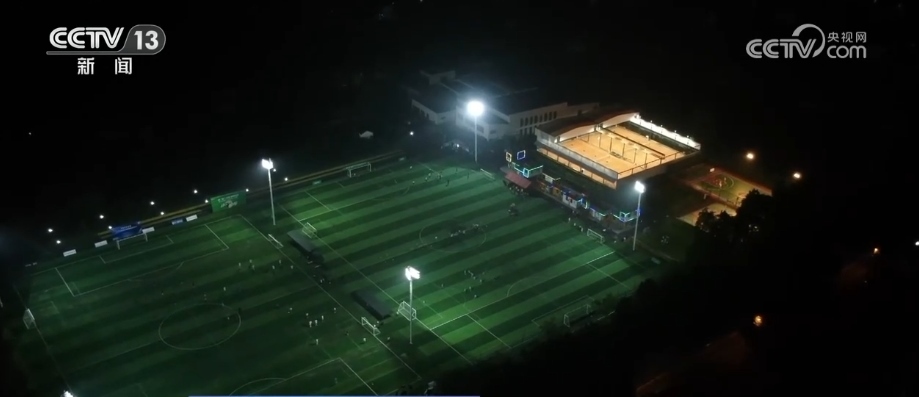 總臺記者 李欣蔓:新港村足球場占地約26畝,包含兩塊標準的11人制足球場。五六年前,這里還是一片被騰退的低小散企業(yè)所剩下的老廠房。2019年,村里建起了第一塊專業(yè)的運動場地。2023年以來,這里已經承接了35場足球賽,各類包場活動達到80多次。除了承接活動和比賽,這塊場地還免費向村民和散客開放。