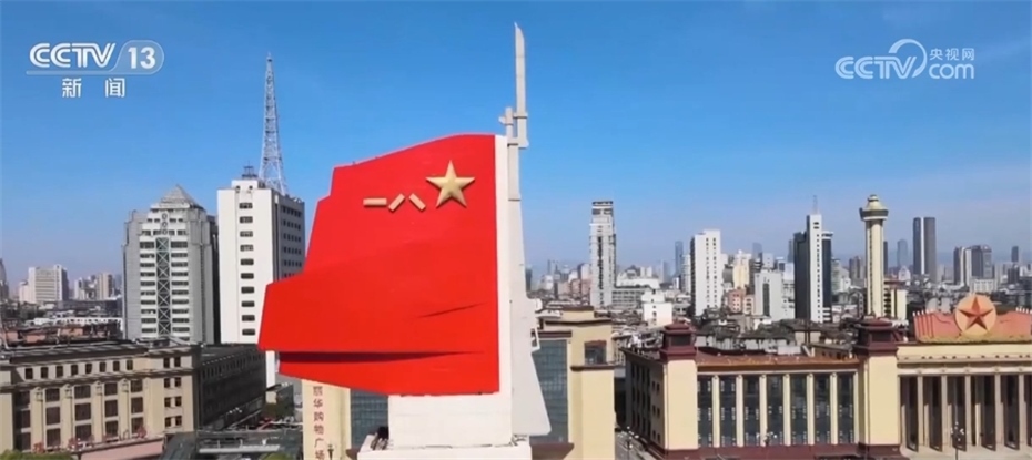 這里是江西省南昌市中心的八一廣場(chǎng),八一南昌起義紀(jì)念塔巍然矗立,塔頂有一面用棗紅色磨光花崗石做成的八一軍旗,形象地表現(xiàn)南昌起義開始中國共產(chǎn)黨獨(dú)立領(lǐng)導(dǎo)武裝斗爭(zhēng)、人民軍隊(duì)從此光榮誕生這一偉大主題?!澳喜穷^的槍聲”如“劃破夜空的一道閃電”,從此軍旗獵獵向前進(jìn)。