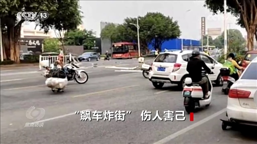 除了噪音擾民,“飆車炸街”引發(fā)交通事故也絕非個例。今年4月5日,廣西南寧數人未戴頭盔“翹頭”飆車,撞上隔離欄,造成1人當場死亡。前不久,在廣西南丹,一輛電動車與小貨車在路口相撞,電動自行車被撞得面目全非,造成一人顱腦損傷、一人多處擦傷。