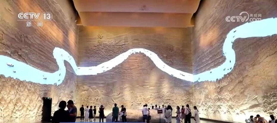 此外,不同于“文物+講解”的傳統(tǒng)展覽形式,博物館試圖將隋唐大運(yùn)河整體“搬進(jìn)”展廳。在這里,游客不僅能近距離觀察從古洛河河道中打撈出的“洛陽運(yùn)河一號”古沉船,還能在浮雕墻前縱覽大運(yùn)河脈絡(luò)全貌,更能走進(jìn)精致復(fù)原的新潭碼頭,與歷史“對話”。