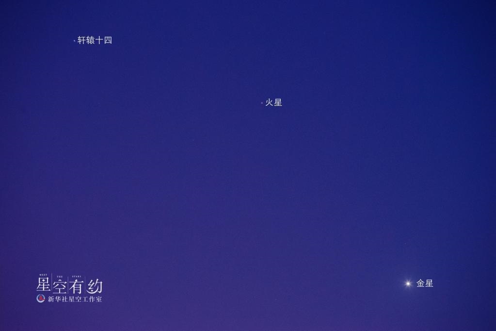 本次相合,火星與軒轅十四最近時僅有0.7度,就比一個滿月視直徑(約為0.5度)大一點,不過受日光影響,無法看到它們相距最近時的情景。好在當天20時左右,兩星近距離爭輝的場景在漸黑的暮色中依然會呈現,感興趣的公眾可以嘗試觀測。