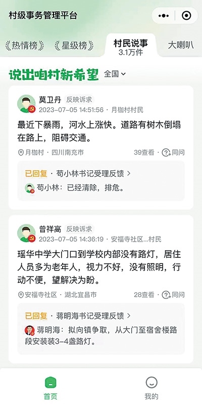 “老百姓把遇到的問(wèn)題發(fā)布,我們看到后及時(shí)回復(fù)、解決,大大提高了工作效率?!笔孳娬f(shuō),他已經(jīng)養(yǎng)成習(xí)慣,每天都會(huì)看看村民在小程序說(shuō)了啥事。
