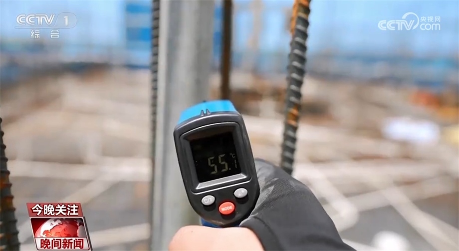 總臺央視記者 張鵬軍:我們來看一看這個鋼管的溫度,55℃,再來看這個樓頂木板的溫度,68.5℃。