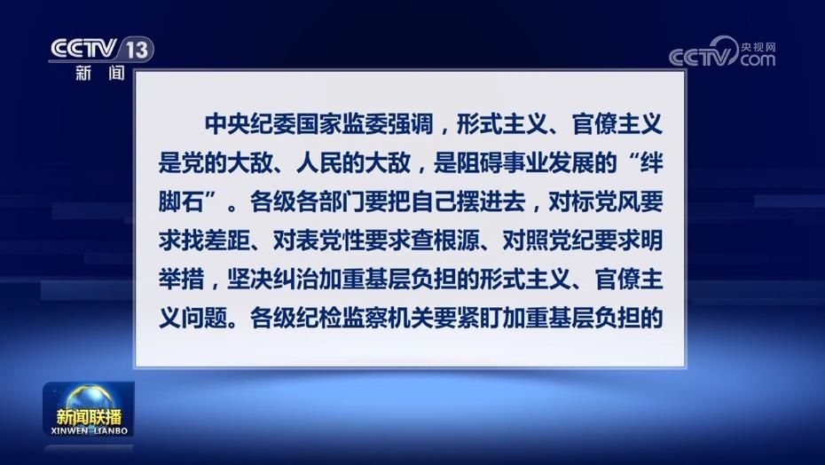 央視網(wǎng)消息(新聞聯(lián)播):二十屆中央紀(jì)委二次全會(huì)對(duì)加強(qiáng)作風(fēng)建設(shè)作出部署,強(qiáng)調(diào)要重點(diǎn)糾治形式主義、官僚主義。日前,中央紀(jì)委國(guó)家監(jiān)委對(duì)十起加重基層負(fù)擔(dān)的形式主義、官僚主義典型問(wèn)題進(jìn)行公開(kāi)通報(bào)。