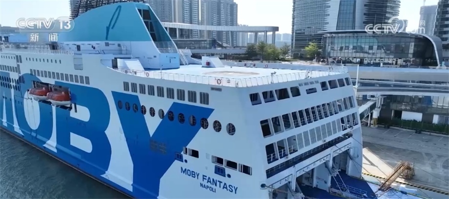 中國(guó)船舶廣船國(guó)際生產(chǎn)管理中心 建造經(jīng)理 王永剛:這艘船就是我們?cè)诮ǖ暮廊A客滾船,這是目前世界上最大的,交付給意大利船東。