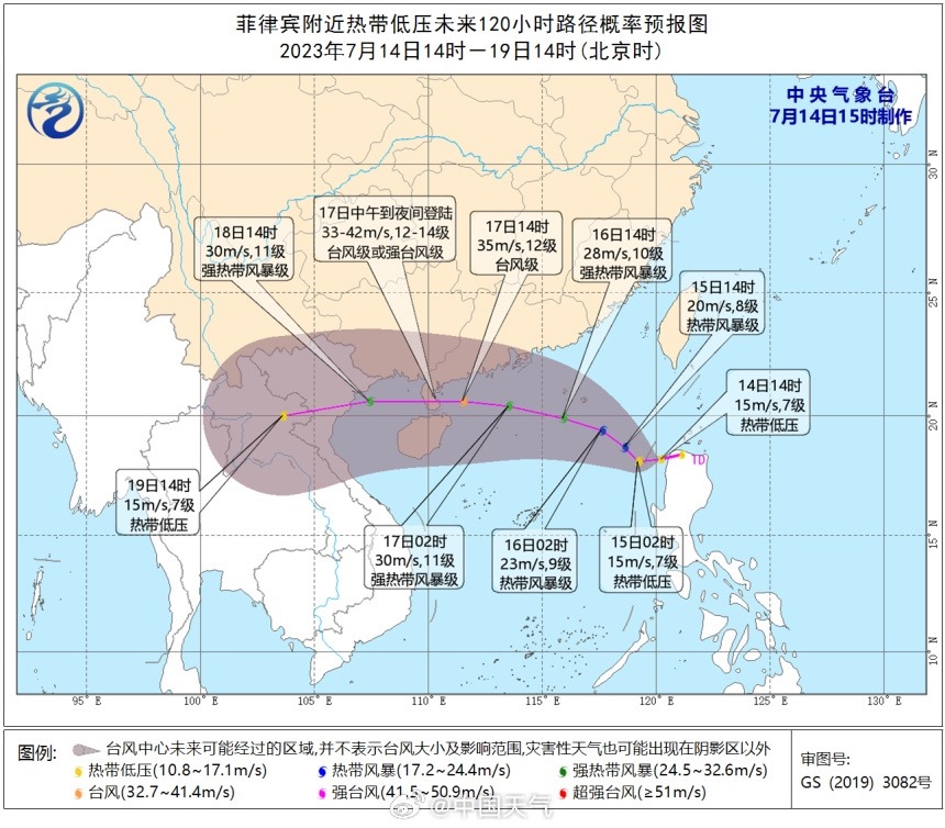 央視網(wǎng)消息:據(jù)@中國天氣網(wǎng)微博消息,今天(7月14日)上午11時,菲律賓附近熱帶低壓生成,預計該熱帶低壓將加強為今年第4號臺風“泰利”,并于下周初影響或登陸我國華南沿海,可能成為今年首個登陸我國的臺風。臺風“泰利”有何特點?會有哪些影響?@中國天氣 首席氣象分析師@Walle胡嘯 為您解析。