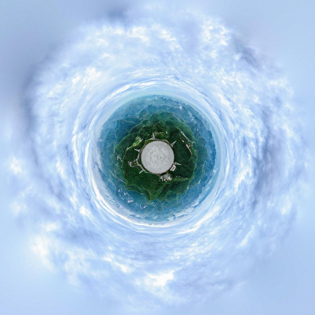 “中國天眼”全景圖(維護(hù)保養(yǎng)期間拍攝)。新華社記者歐東衢 攝