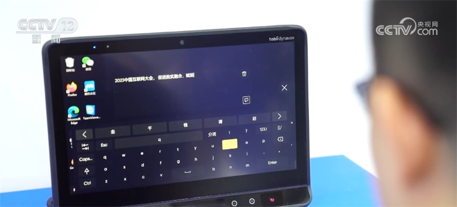 這位技術(shù)人員正在演示“眼動(dòng)輸入法”,通過(guò)眼球轉(zhuǎn)動(dòng)和凝視來(lái)操作電腦完成輸入。這種眼球追蹤技術(shù)通過(guò)眼控儀上配備的多組近紅外光源,借助精密算法得到目光注視點(diǎn)坐標(biāo)位置,從而讓電腦知道眼睛在看哪里,實(shí)現(xiàn)用目光操作電腦,取代傳統(tǒng)的鍵盤鼠標(biāo)。