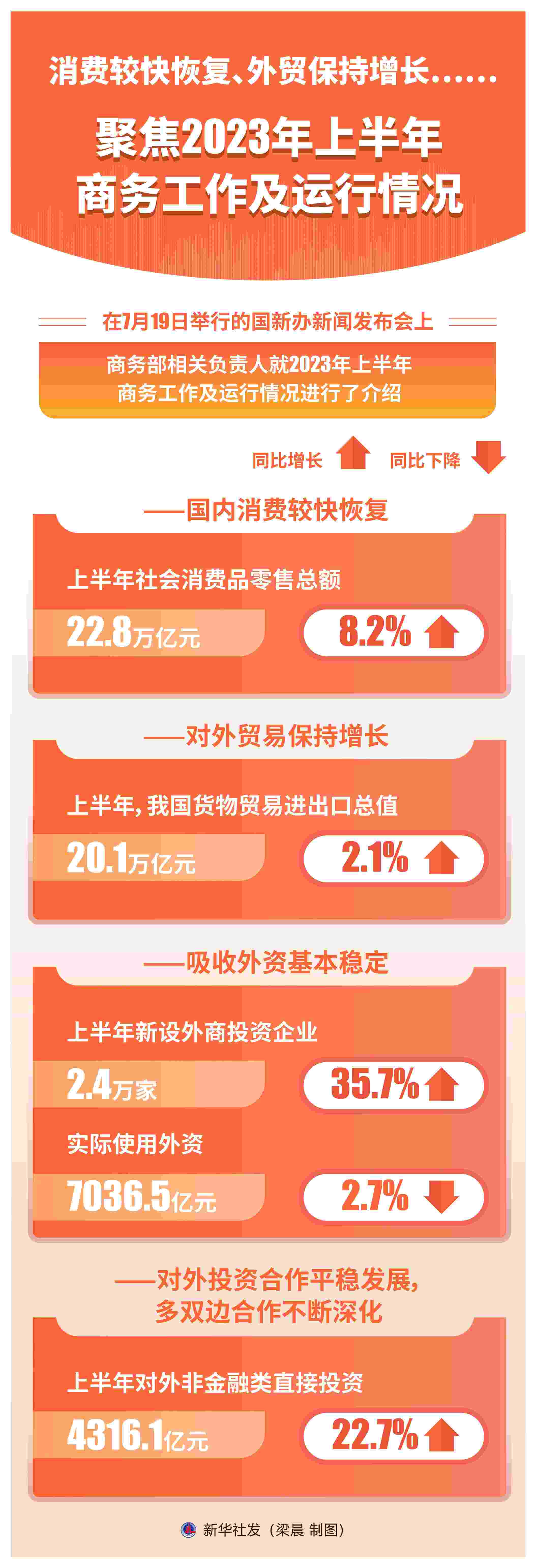 新華社北京7月19日電 題:消費較快恢復、外貿保持增長……聚焦2023年上半年商務工作及運行情況