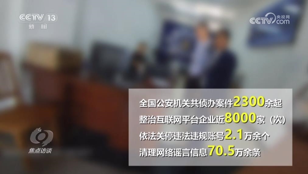 今年4月以來,公安部網(wǎng)安局部署開展為期100天的網(wǎng)絡(luò)謠言打擊整治專項(xiàng)行動(dòng),全國公安機(jī)關(guān)共偵辦案件2300余起,整治互聯(lián)網(wǎng)平臺企業(yè)近8000家(次),依法關(guān)停違法違規(guī)賬號2.1萬余個(gè),清理網(wǎng)絡(luò)謠言信息70.5萬余條,對網(wǎng)絡(luò)謠言違法犯罪形成強(qiáng)大震懾。