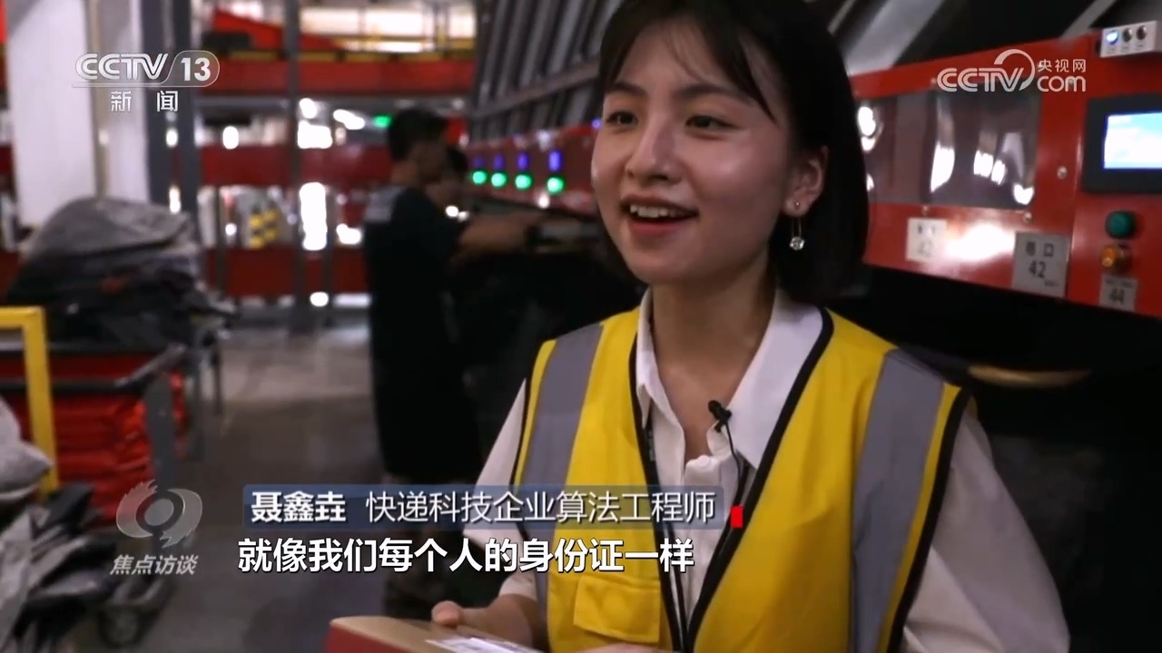 快遞科技企業(yè)算法工程師聶鑫垚:“像這一票件它都有自己的面單,就像我們每個人的身份證一樣,然后上面有一維碼,還有二維碼。當快遞經(jīng)過一個叫六面掃的設備的時候,就可以把碼掃描出來,這個碼里面會涵蓋快件的生命信息。”