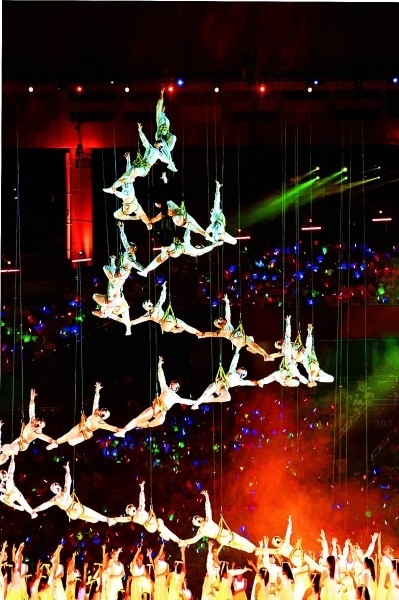 成都大運會開幕式現(xiàn)場的文藝演出。本報記者 郭俊鋒攝/光明圖片