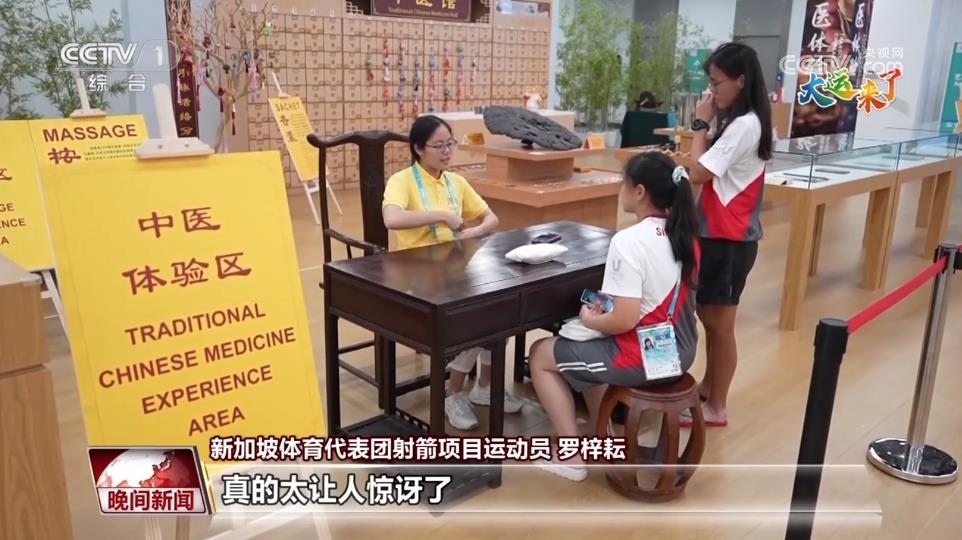 走在大運(yùn)村里面,在很多地方都可以看到一些中醫(yī)文化的元素。比如在這個中醫(yī)體驗區(qū)里就可以了解中醫(yī)古籍,還能感受按摩,甚至能夠在這里進(jìn)行把脈問診,所以這個區(qū)域也吸引了很多代表團(tuán)成員和運(yùn)動員到這里來體驗。