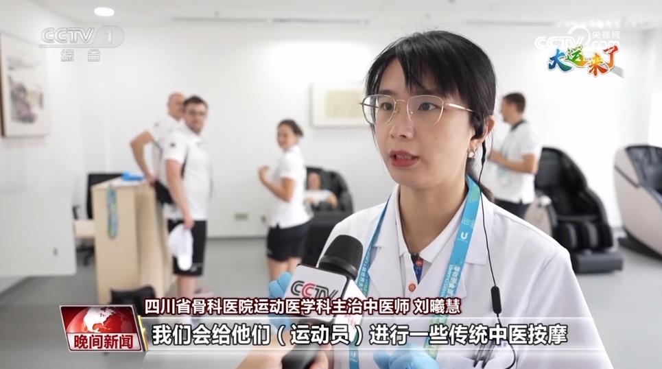 四川省骨科醫(yī)院運(yùn)動醫(yī)學(xué)科主治中醫(yī)師 劉曦慧:我們會給他們(運(yùn)動員)進(jìn)行一些傳統(tǒng)中醫(yī)按摩,還有一些特殊的穴位和特殊的治療方法。除此之外,我們還有一些傳統(tǒng)的針灸拔罐,針對性地對他們進(jìn)行一些治療和預(yù)防。