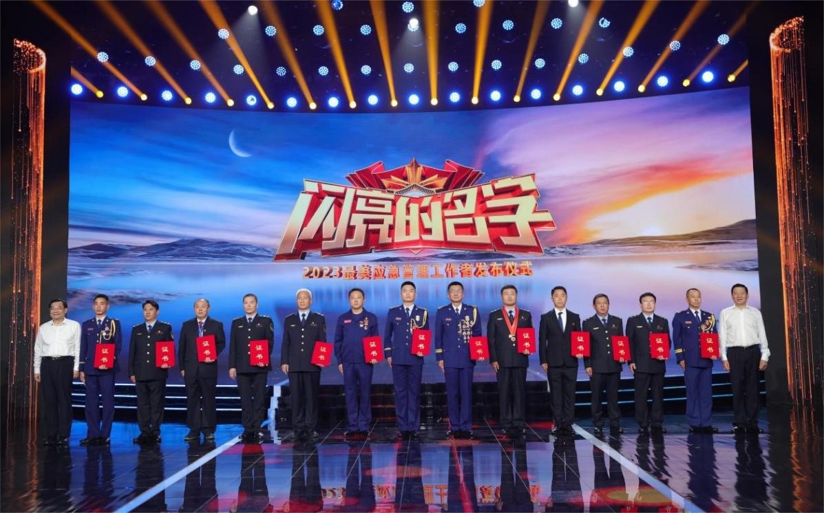 圖:中共中央宣傳部分管日常工作的副部長(zhǎng)、文化和旅游部部長(zhǎng) 胡和平(左一);應(yīng)急管理部黨委書記、部長(zhǎng) 王祥喜(右一)為2023“最美應(yīng)急管理工作者”頒發(fā)證書。