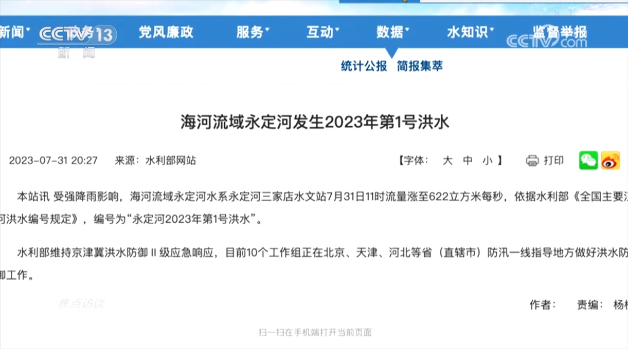萬群志:“國家防總、應急管理部按照黨中央、國務院決策部署,堅持人民至上、生命至上,組織協調有關地區(qū)和部門,全力以赴防范應對這次海河流域華北地區(qū)的極端強降雨過程。”