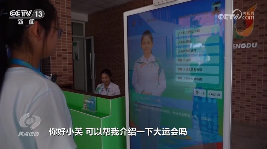 本屆大運(yùn)會(huì)的虛擬志愿者小芙,通過(guò)先進(jìn)的語(yǔ)音合成、AI口唇表情驅(qū)動(dòng)、圖像處理等技術(shù),能夠使用普通話、四川話和英文,和攝像頭識(shí)別出的對(duì)象進(jìn)行“面對(duì)面”的直接交流。這套系統(tǒng)的研發(fā)者之一雷曉輝是一名“90后”工程師。