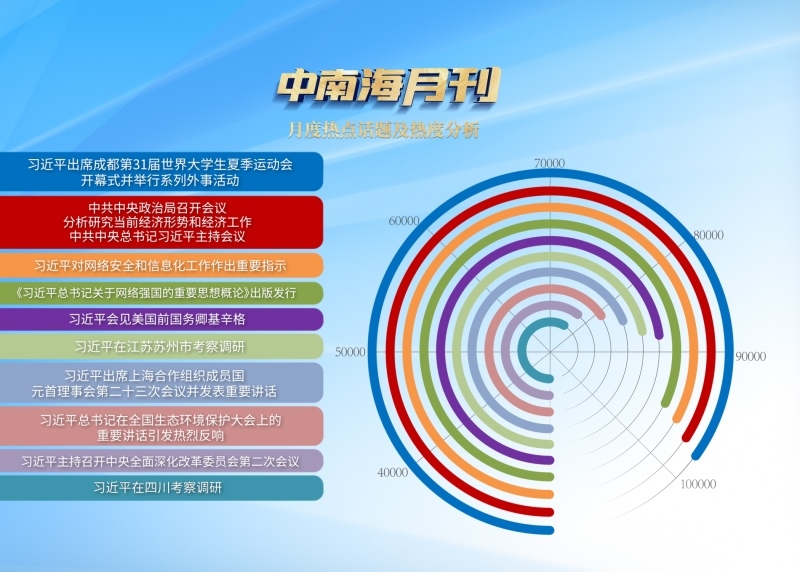 央視網(wǎng)《中南海月刊》運用智能大數(shù)據(jù),與您一起回眸七月,從關系到新征程開局起步、中國式現(xiàn)代化行穩(wěn)致遠的大事要事中,感受實干為筆、擔當為墨,看宏偉藍圖如何轉化為高質量發(fā)展“實景畫”。
