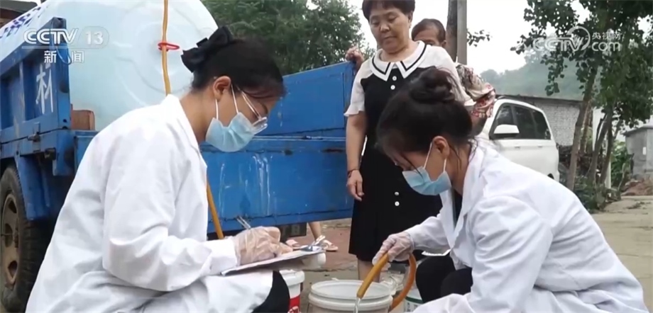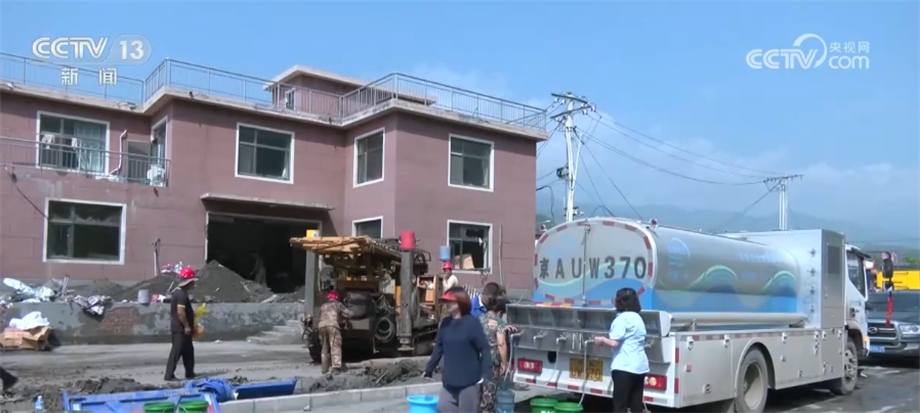 在北京市房山區(qū)西班各莊村,由于洪水侵襲,當(dāng)?shù)厮淳粵_毀,230戶村民出現(xiàn)飲水困難。當(dāng)?shù)厮块T立即派出應(yīng)急送水車,同時(shí)集結(jié)勘探隊(duì)、機(jī)械設(shè)備,用最快的速度更新水源。?