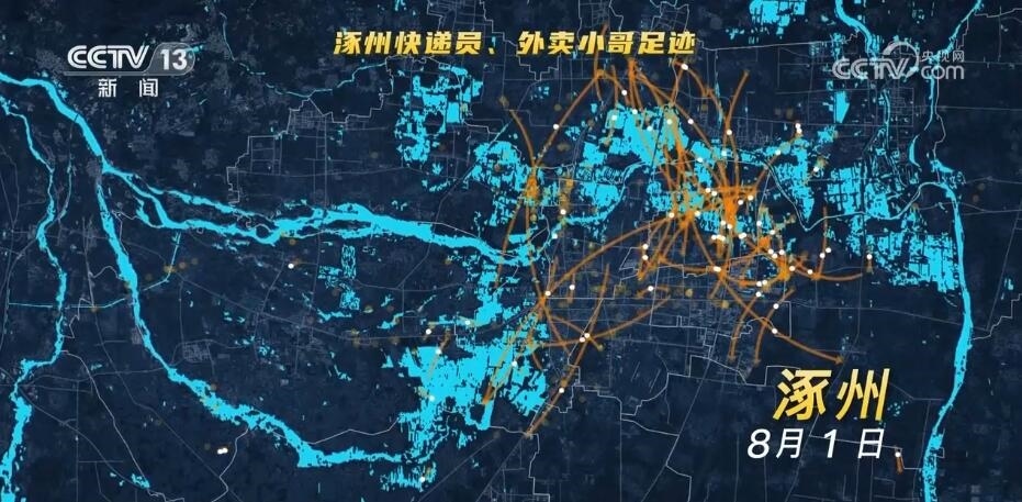 8月1日到8月2日,幾乎在24小時內(nèi),涿州小城就增加了近1.7萬個外地手機信令,尤其有將近1萬人從外省趕到涿州,我們從新聞中看到了來自各地的救援“逆行者”,爭分奪秒地向受災(zāi)最嚴(yán)重的地方挺進。