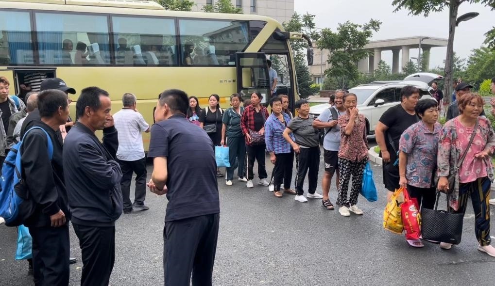 8月4日,轉(zhuǎn)移安置群眾乘大巴車來(lái)到五常市雅臣中學(xué)安置點(diǎn)。新華社記者 劉昊東 攝