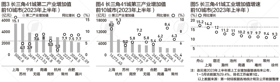 第一財經(jīng)記者梳理公開數(shù)據(jù)發(fā)現(xiàn),長三角41城中,共有8個城市的上半年GDP超5000億元,6市增速達(dá)到或超過8%。