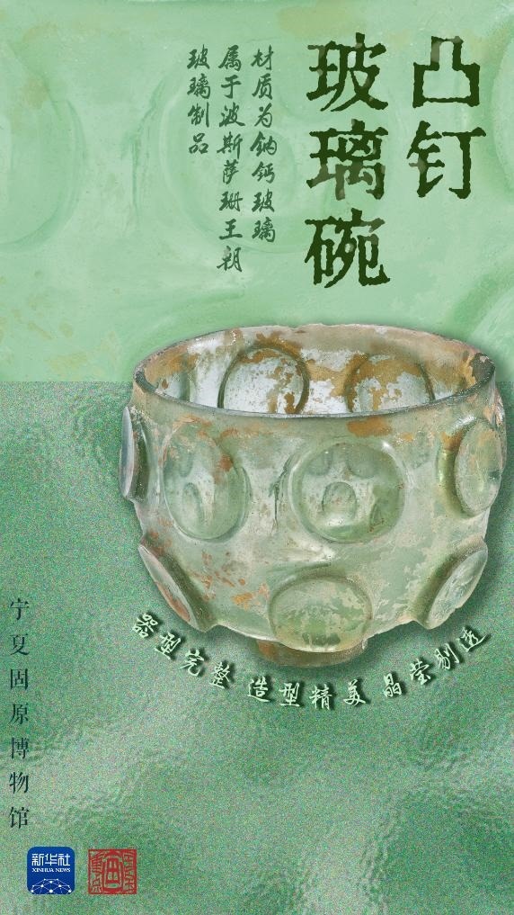 不同于我國古代的鉛鋇玻璃,這件出土于寧夏固原的凸釘玻璃碗的材質是鈉鈣玻璃,是經絲綢之路遠道而來的“進口貨”——波斯薩珊王朝玻璃制品。據(jù)張強介紹,這只玻璃碗體現(xiàn)了薩珊玻璃器形和紋飾上的獨特風格以及精湛的磨琢工藝,是我國出土的薩珊玻璃器的代表,說明當時西方玻璃器經絲綢之路輸入中國,也反映出固原作為絲綢之路東段北道的必經之地,在當時國際商業(yè)貿易和文化傳播中的重要地位。