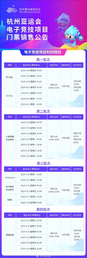 ·杭州亞運(yùn)會(huì)電子競技項(xiàng)目門票14日啟動(dòng)銷售。